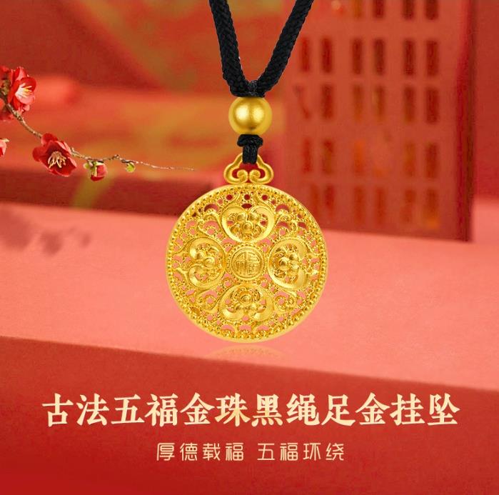 足金五福挂坠