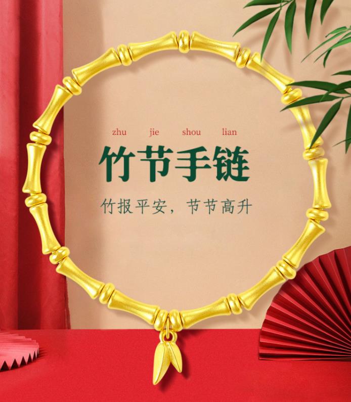 足金古法竹节手串